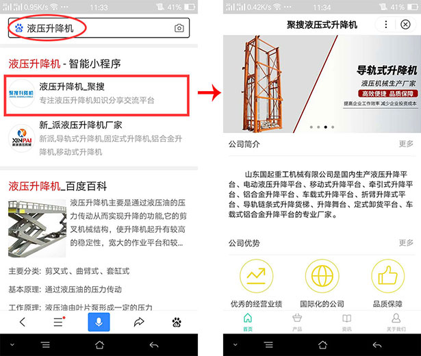 百度智能小程序案例:鋁合金升降機(jī)
