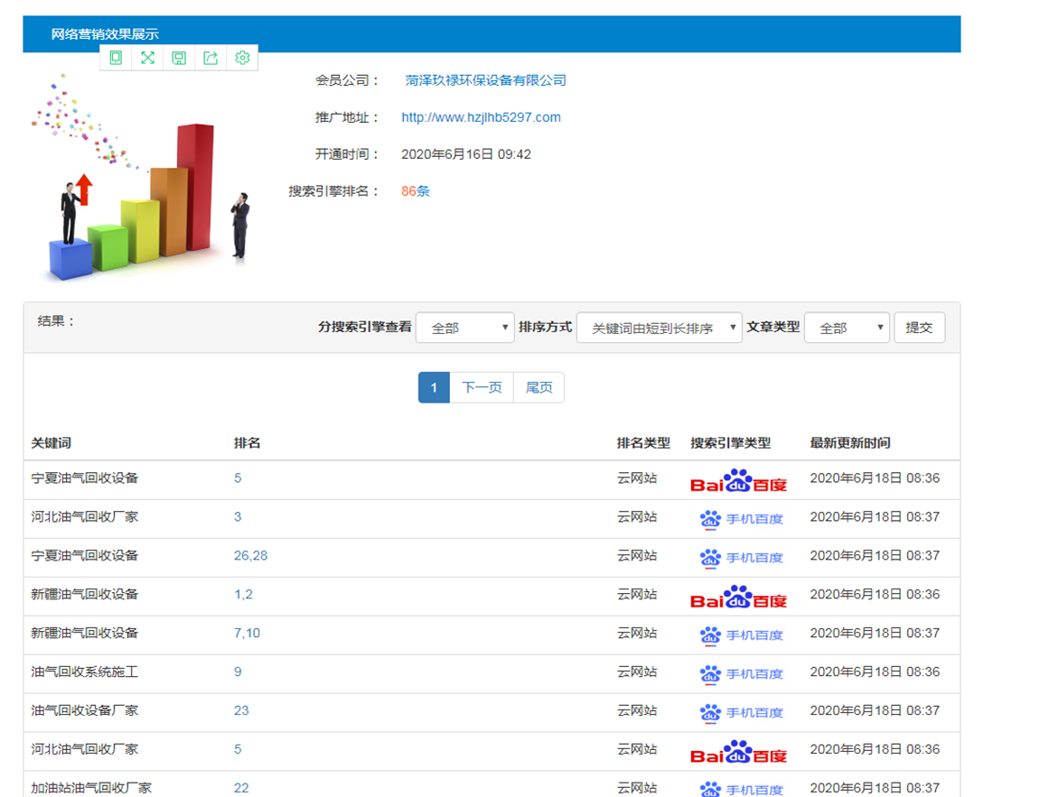 油氣回收行業(yè)全網(wǎng)推廣測試兩天上詞情況